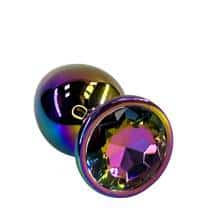 - Анальная пробка цвета неохром с радужным кристаллом (стразом) – это декоративное украшение, имеющее проникающую анальную часть и имитацию драгоценного камня круглой формы в основании.