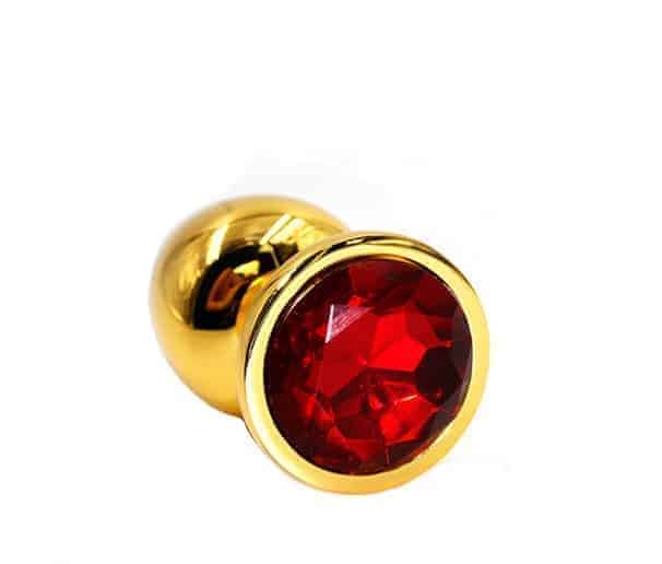 Анальная пробка Kanikule Small, золотистая с красным кристаллом