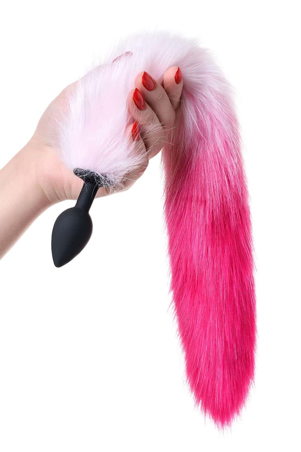 Анальная втулка с бело-розовым хвостом Popo Pleasure Toyfa, S, черный