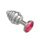 Анальная втулка Silver Spiral с малиновым кристаллом маленькая.
