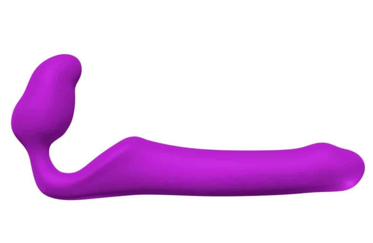 - Безремневой страпон имеет изогнутую часть, предназначенную для вагинального проникновения, что делает эту игрушку идеальной для женщин или пар мужчина-женщина.