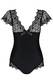 Элегантное черное боди в классическом стиле, зона декольте и низ изделия обрамлены кружевом, на спине V-образный вырез украшен атласным бантом. Чашка мягкая на косточке. Низ боди на застежке на крючках.
