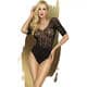 - Классическое боди из плотной сеточки с цветочным декором, высокими трусиками из плотной ткани и открытой спинкой.