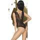 - Боди выполнено из ажурной сетки, с декором в виде шнуровки и овальным вырезом на животике.