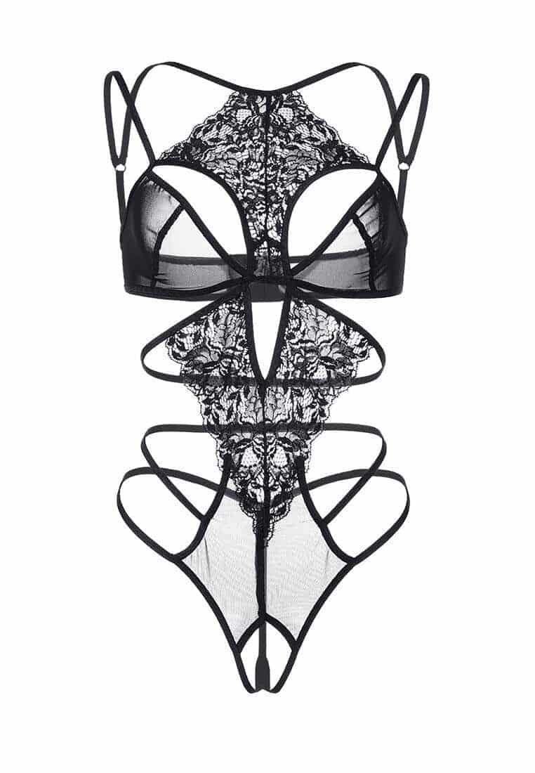 - Стрепы красиво подчеркивают изгибы тела, а доступ к интимной зоне позволяет не снимать боди во время игры.