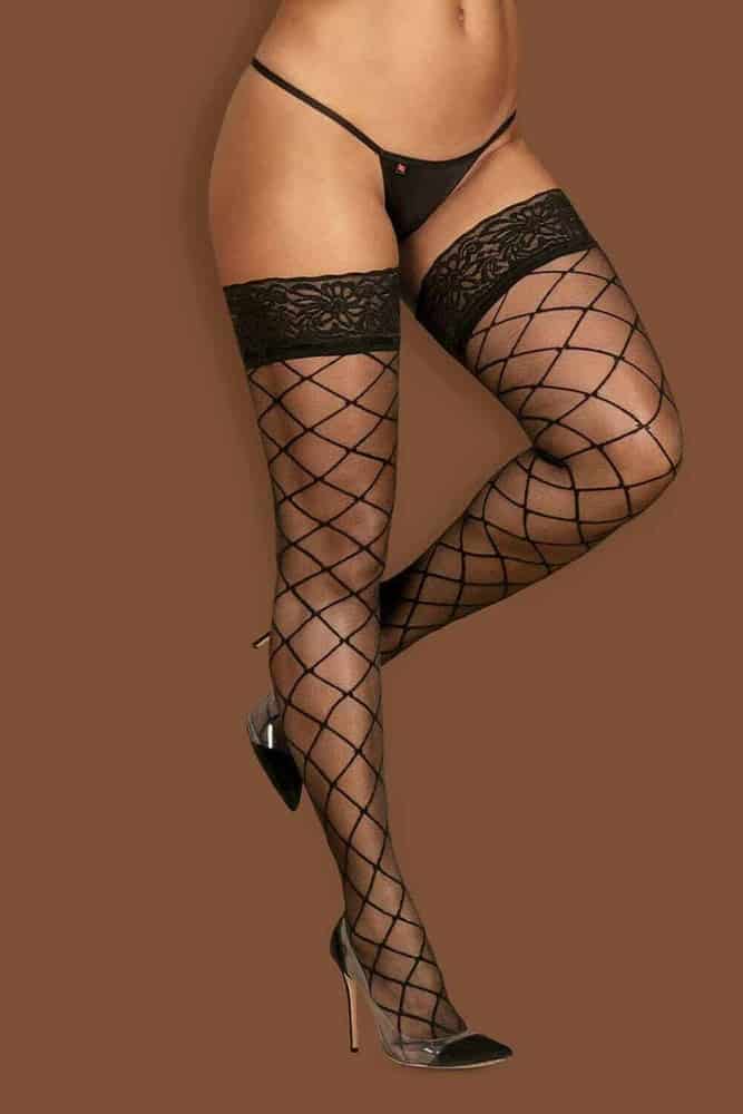 - Черные чулки S 811 garter stockings с узором в крупную сетку, кружевная резинка с силиконовыми полосками.