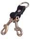 Два карабина со стяжкой может использоваться для соединения наручников и поножей, а также других девайсов БДСМ-тематики. Она выполнена из прочного металла и натуральной кожи.