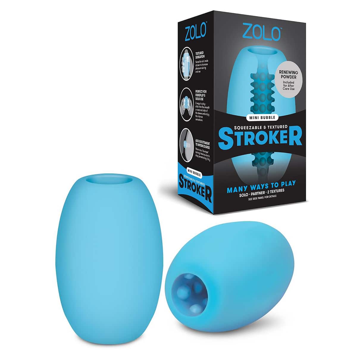 - Zolo Mini Bubble — отличный упругий мастурбатор с двусторонней поверхностью. Выбор за вами: наслаждайтесь гладкой стороной или массажными шариками, соло или с партнером.