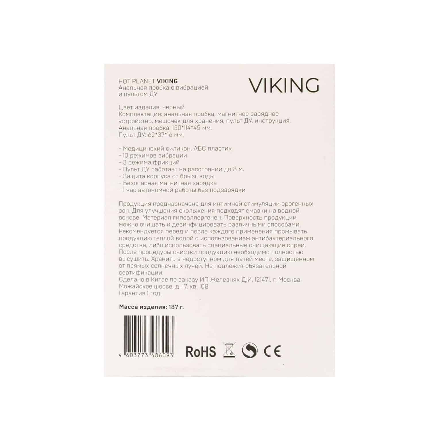Фрикционная вибропробка с пультом ДУ Hot Planet Viking, черная