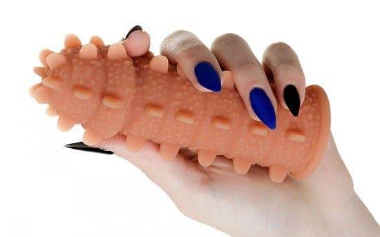 - Насадка закрытая телесная, имитирующая кожу. Выполняется из реалистичных материалов, которые на ощупь неотличимы от кожи. Может быть гладкой или рельефной. Часто рисунок на поверхности — это выраженная головка и выпуклые вены как на обычном половом члене. Насадка чаще всего эластичная. Некоторые модели регулируются по длине, лишний материал можно даже отрезать, чтобы устройство сидело идеально. Нежный материал требует особого ухода: нужно хранить насадку в специальном тальке, мыть только мягкими очищающими средствами. Такая вещь дает увеличение на 2-10 см, при этом прирост диаметра не слишком большой. Головка бывает мягкой или плотной.
