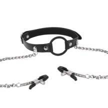 К расширителю цепочками крепятся зажимы для сосков, которые будут усиливать ваши ощущения каждый раз, когда вы повернете голову или откинете её назад. Сила зажима регулируется винтами.