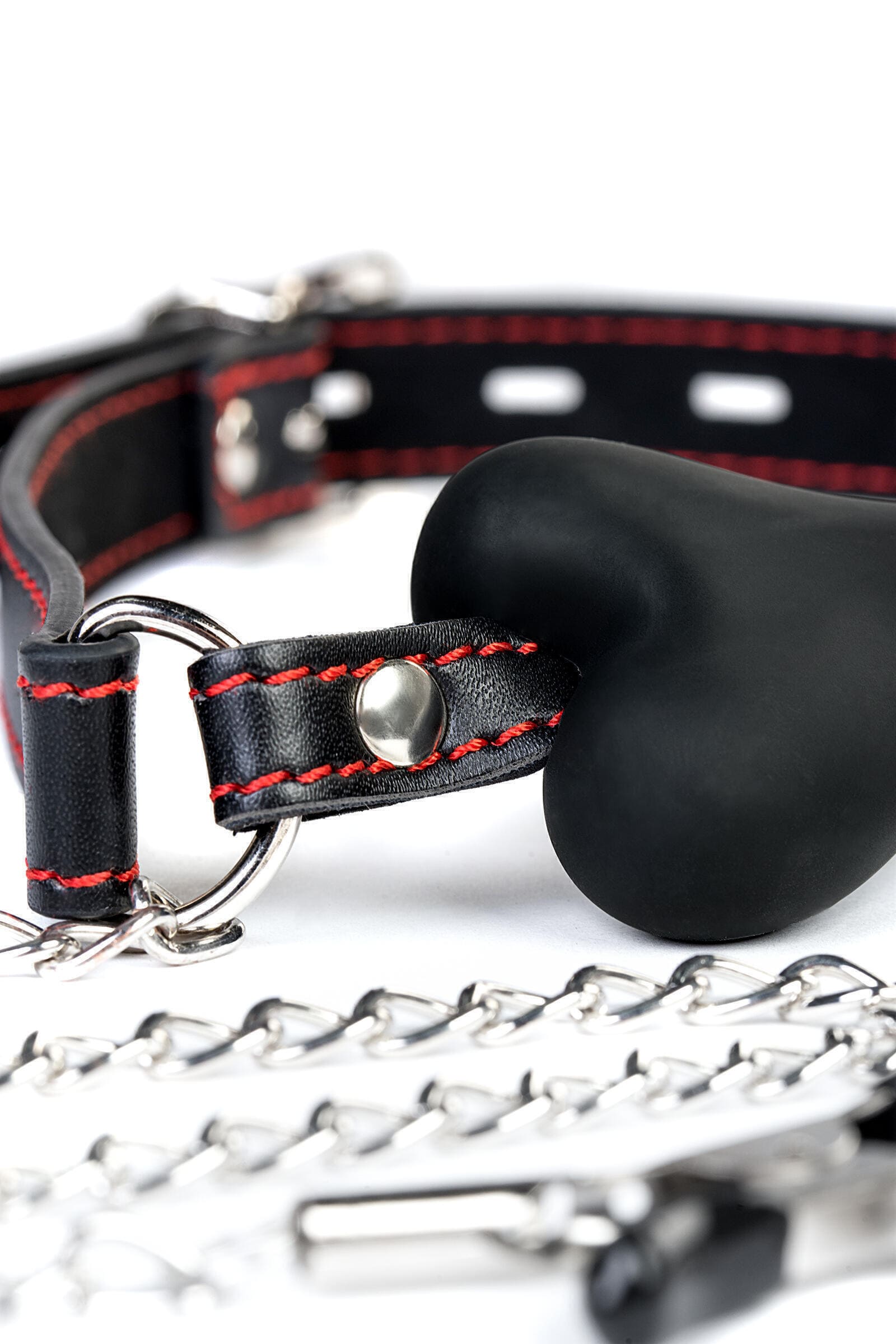 - Силиконовый кляп-трензель на ремешке из PU-кожи лишает возможности разговаривать, при этом его комфортно прикусывать.