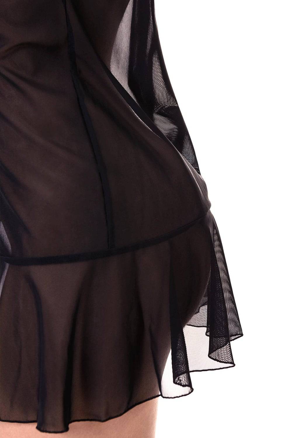 - Кружевная вставка и легкие оборки подчеркивают ложную невинность образа.
