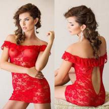 Кружевная комбинация с вырезом на спинке и стринги, красные - M/L