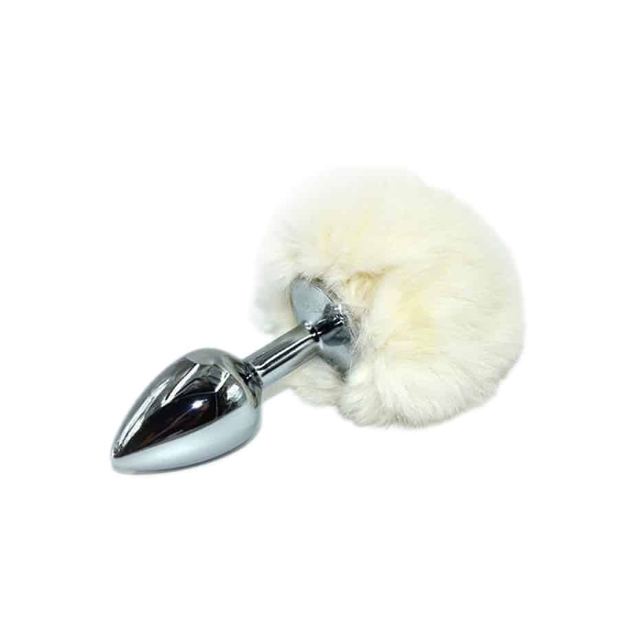 Металлическая анальная пробка Kanikule с белым заячьим хвостиком, S