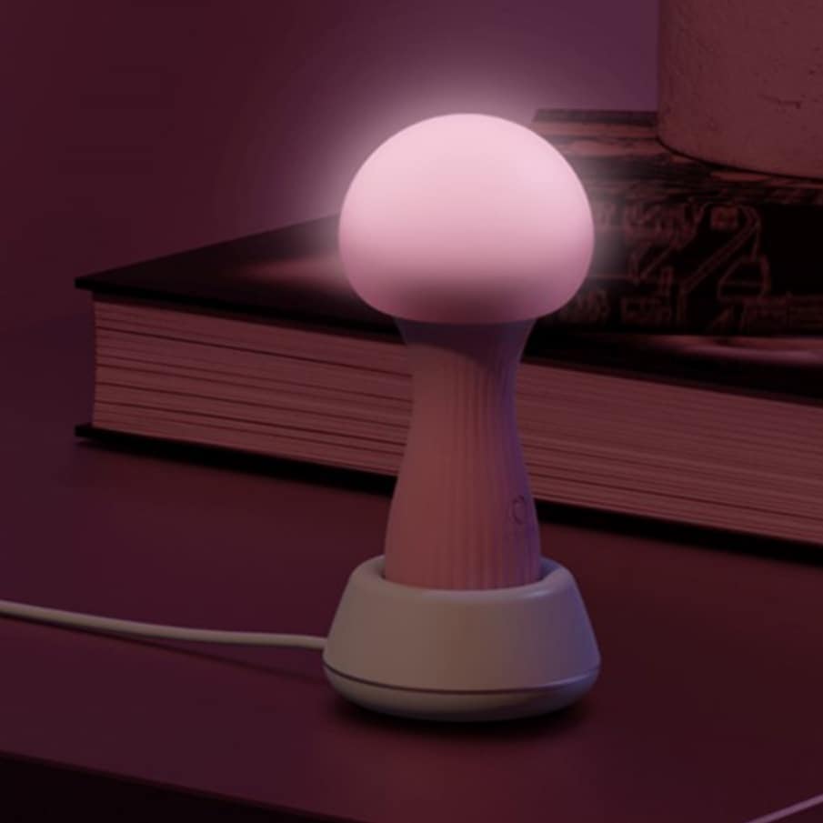 - Вибратор заряжается на специальной станции, которая есть в комплекте. Благодаря такому зарядному устройству-подставке и подсветке в "шляпке" Mushroom, эта игрушка также является красивым ночником.
