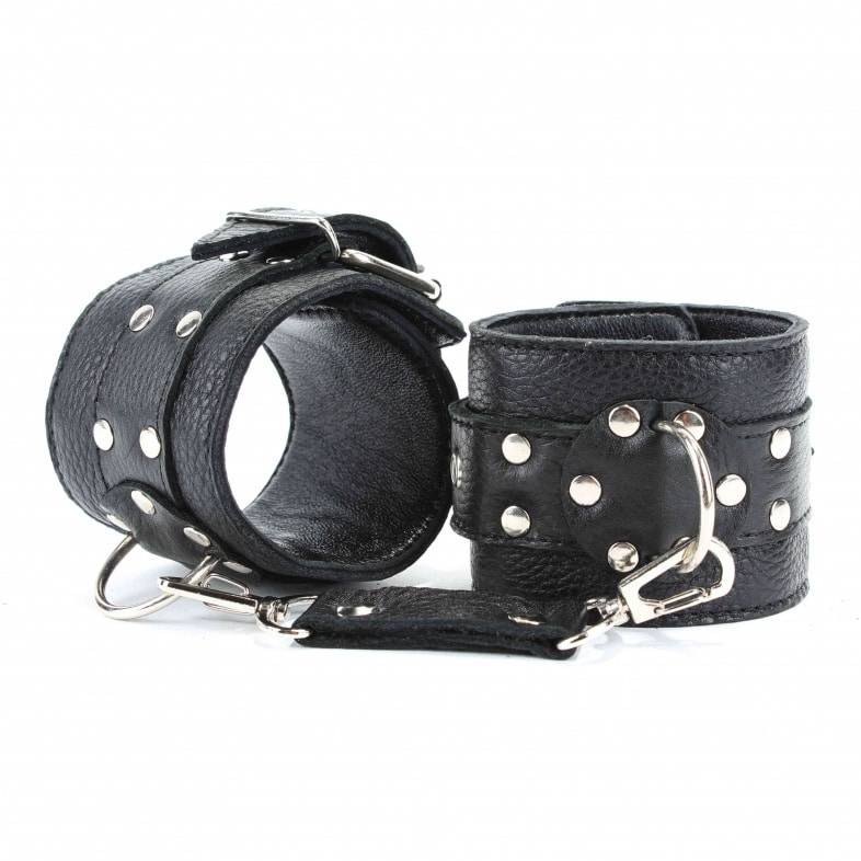 - Это классические наручники из мягкой натуральной кожи декорированные металлическими заклепками.