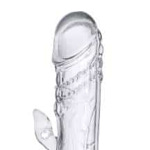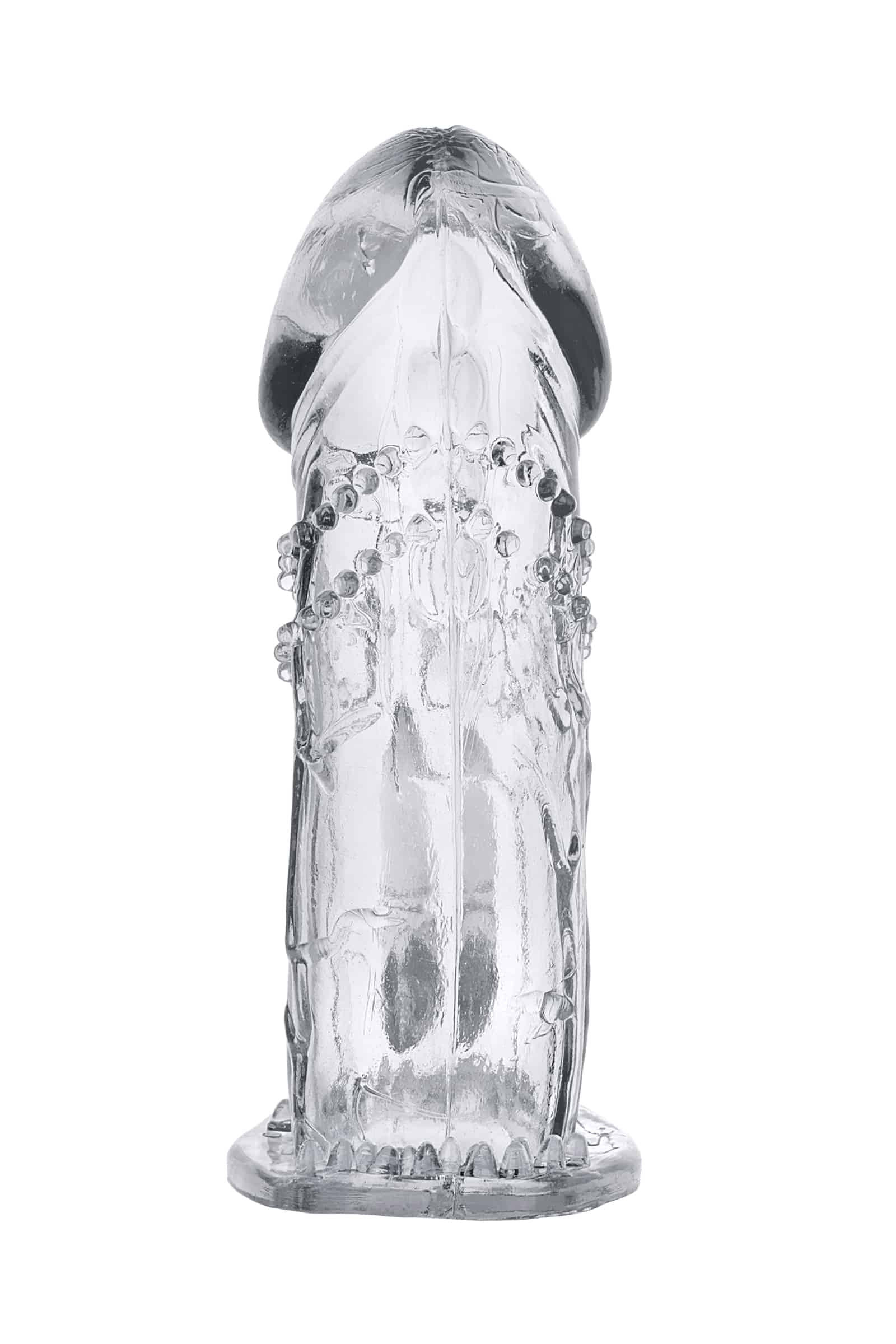 Насадка на член с рельефом и отростком для стимуляции клитора Toyfa, бесцветная
