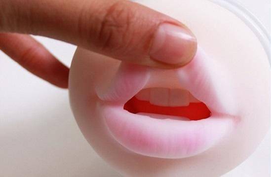 - Оральный мастурбатор. Игрушка в форме рта, которая может отличаться наличием языка и внутренней фактурой. При использовании ощущается посасывание за счет изменения давления воздуха внутри колбы.