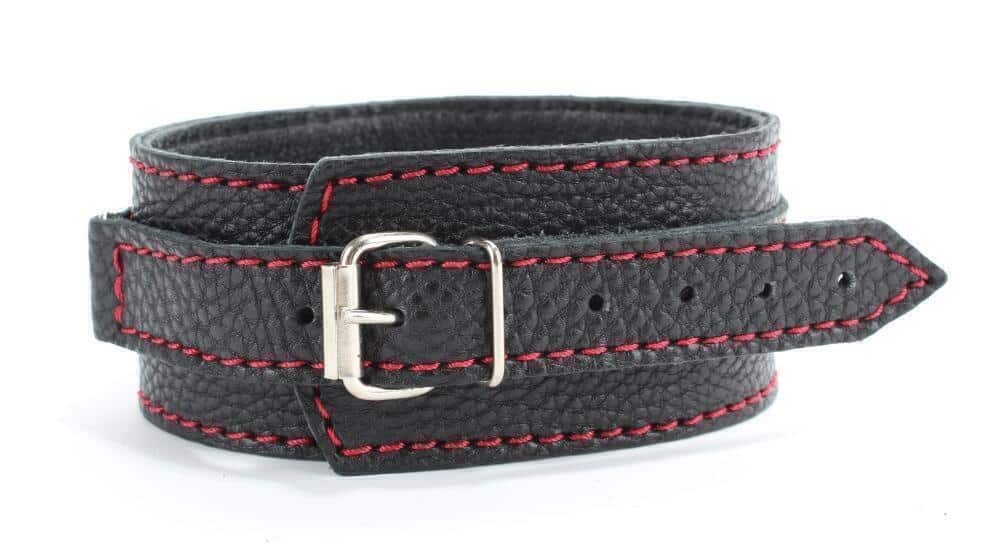Ошейник с красной строчкой и шипами BDSM Арсенал XL, черный