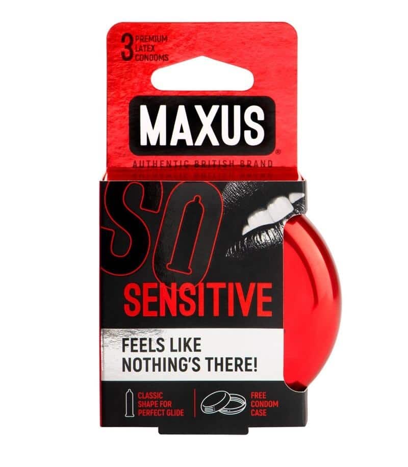 - Английские ультратонкие презервативы Maxus Sensitive, из натурального премиального латекса с гиппоалергенной смазкой и накопителем.