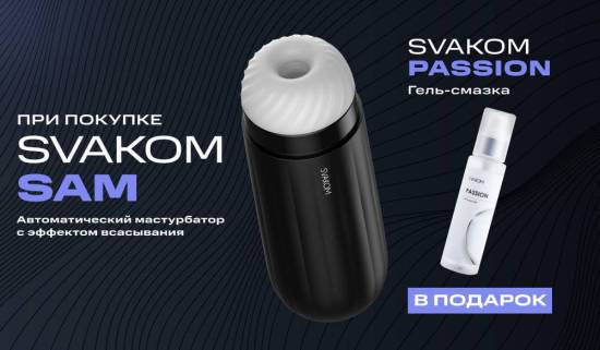 Покупайте премиальный автоматический мастурбатор с эффектом всасывания Svakom Sam и забирайте лубрикант на водной основе Svakom Passion совершенно бесплатно!