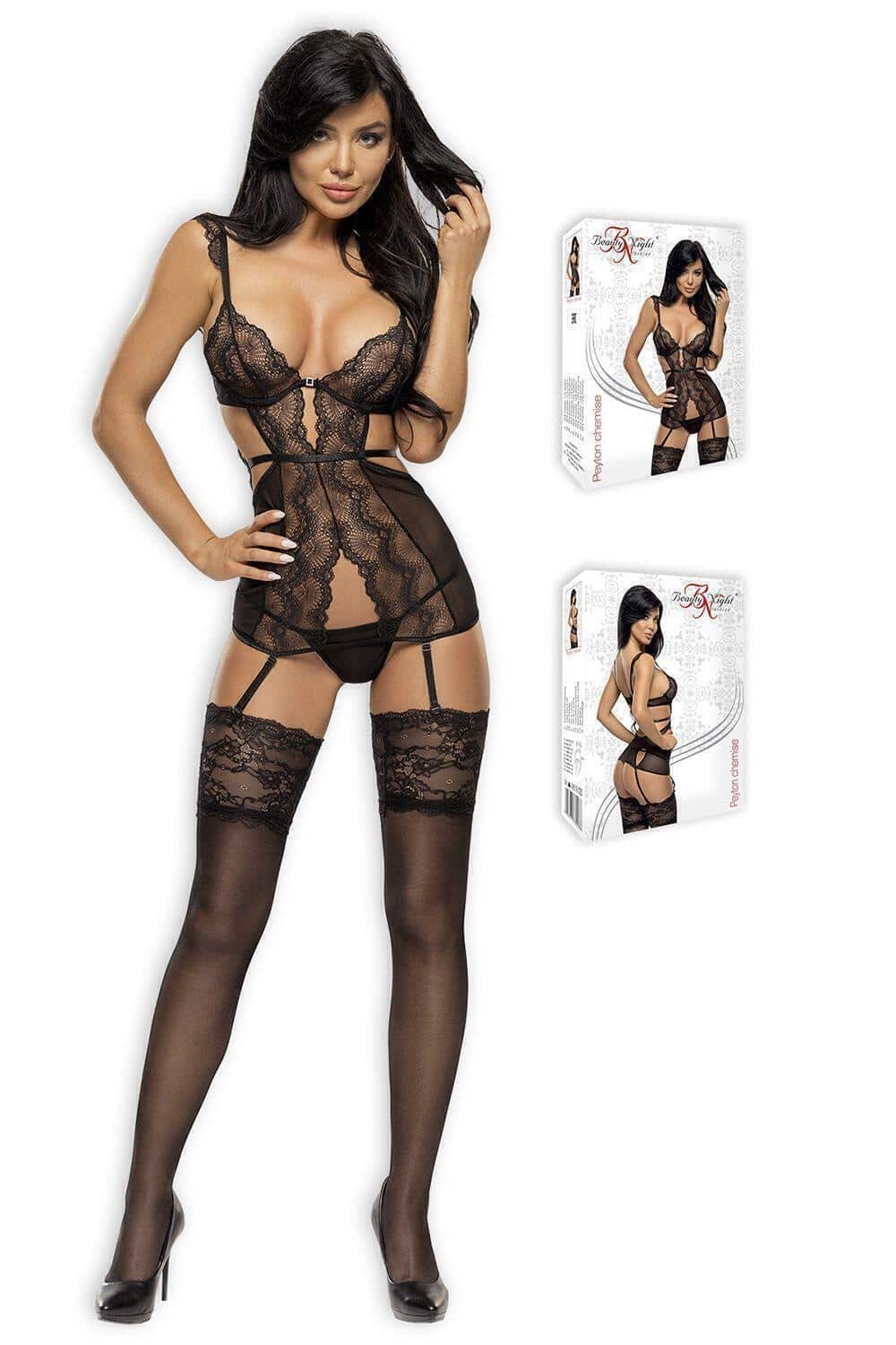 - Черная кружевная сорочка Peyton с бюстгальтером на косточках.