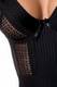 В сорочке сочетаются несколько видов ткани. Есть абсолютно прозрачные вставки ( по бокам), есть полупрозрачные части, а есть закрытые участки. Их правильное чередование помогает удлинить силуэт, а темная горизонтальная вставка делает талию визуально тоньше.