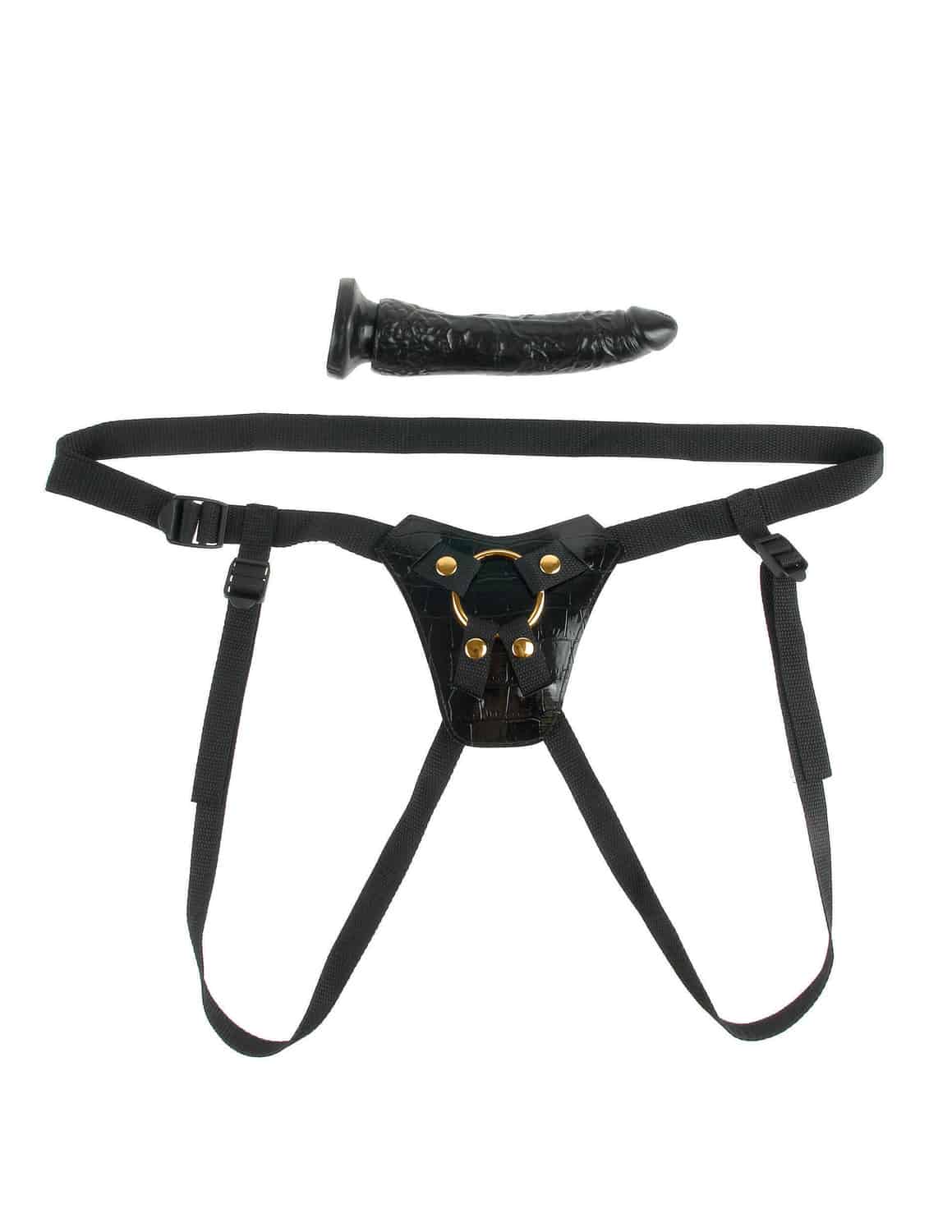 Страпон женский PipeDream Fetish Fantasy Gold Designer Strap On, черный с золотом
