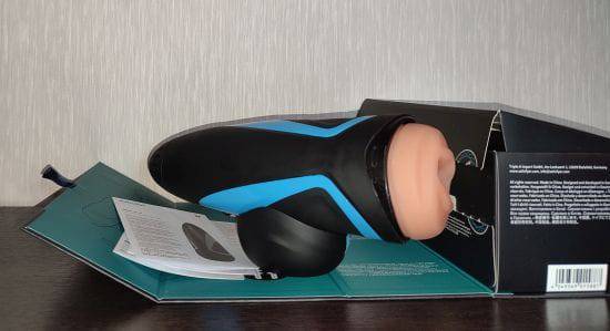 Когда берешь в руки этот мастурбатор, то внешне он скорее напоминает музыкальную колонку. Поэтому, если после использования вы вдруг забудете его убрать, вряд ли кто-то посторонний догадается, что же это за предмет такой. Лаконичный дизайн пластикового корпуса: основной цвет черный и полоски ярко-голубого цвета. Все меняется – стоит снять крышку.