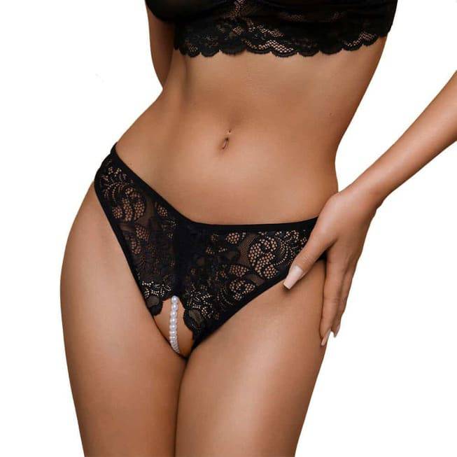 - Кружевные трусики с жемчужной нитью — идеальный выбор для тех, кто хочет добавить в романтический вечер нечто особенное.