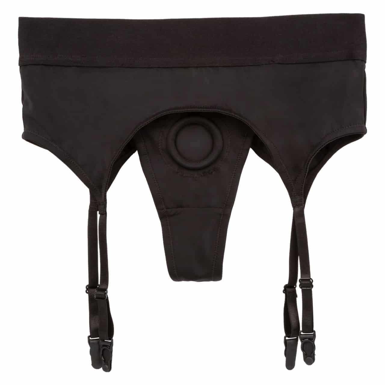 Трусики-стринги для страпона CalExotics Boundless с подвязками для чулок L/XL, черные