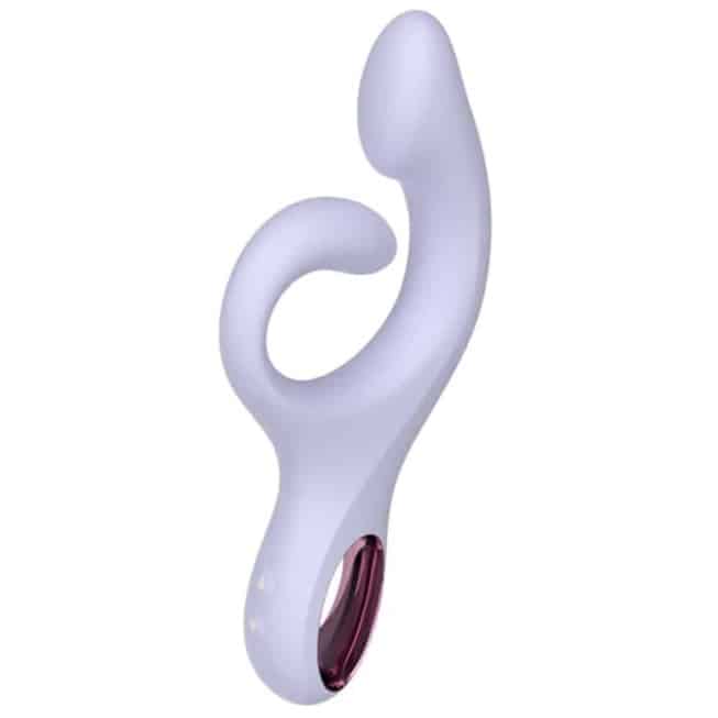 - Двойная стимуляция. Гибкий ствол оснащён мягкой подушечкой, которая точно воздействует на точку G. Это не просто механическое давление — подушечка словно мягкими, уверенными касаниями пробуждает зону, которая часто остаётся «в тени» при классическом сексе. Одновременно подвижный лепесток обхватывает клитор и работает так, чтобы стимулировать его не точечно, а объёмно. Возникает эффект «полного покрытия», когда внешние и внутренние эрогенные зоны активируются вместе, синхронно.