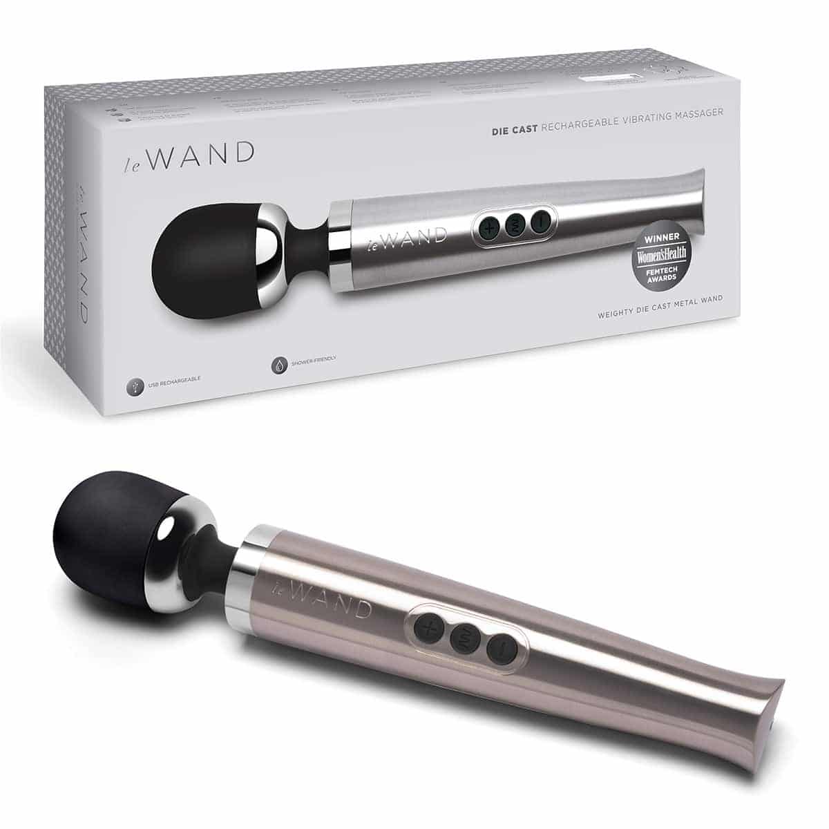 - Литой аккумуляторный Le Wand — это универсальный вибромассажер с усиленным металлическим корпусом для мощных вибраций.