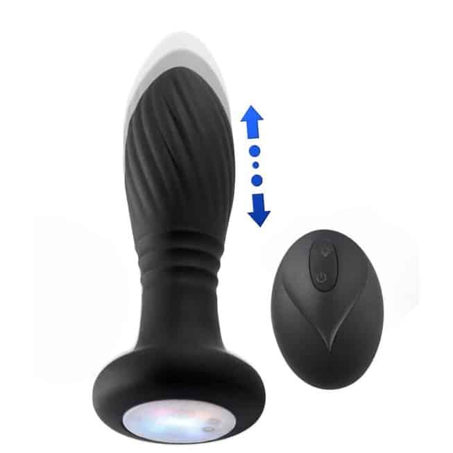 - Анальная пробка с вибрацией и фрикционным механизмом, оснащенная дистанционным управлением и LED-подсветкой, создана для усиленной стимуляции и незабываемых ощущений.