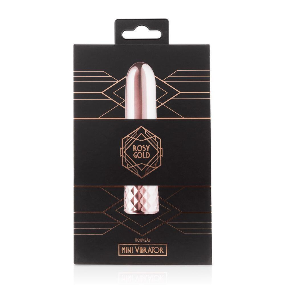 - Маленький вибратор с классическим дизайном выполнен из металла розового золота и выглядит очень элегантно.