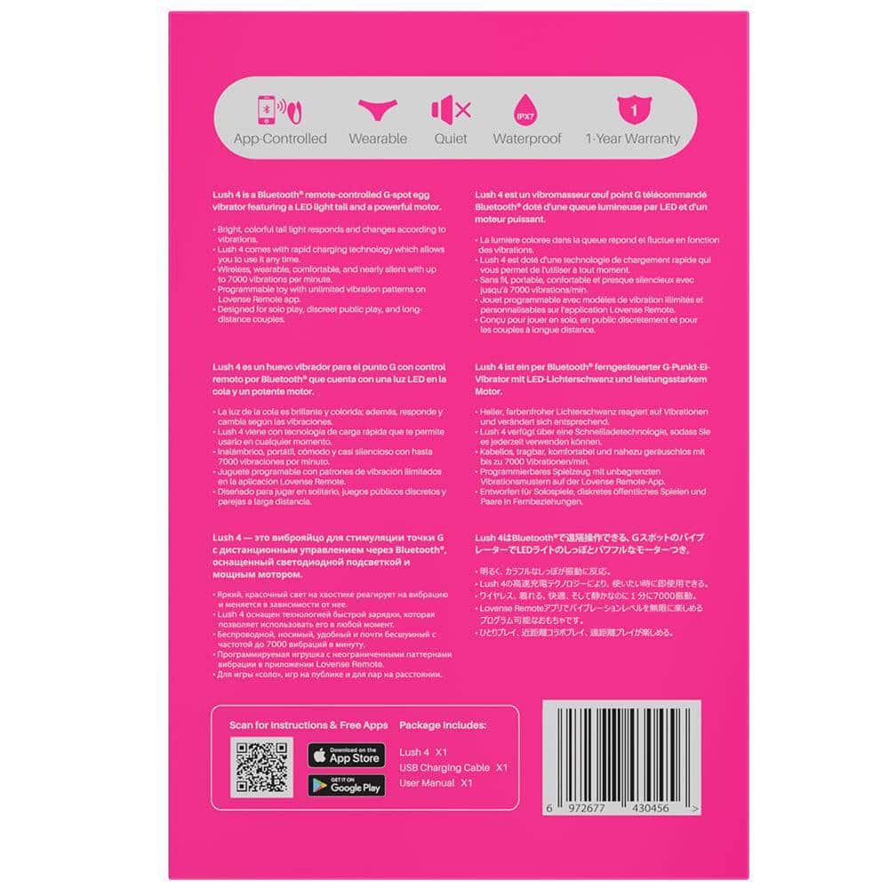 - Объединяя все преимущества Lush 3 с усовершенствованным программным обеспечением, Lush 4 предлагает как непревзойденное удовольствие, так и полностью настраиваемую подсветку хвостика, делая каждый сеанс уникальным для вас.
