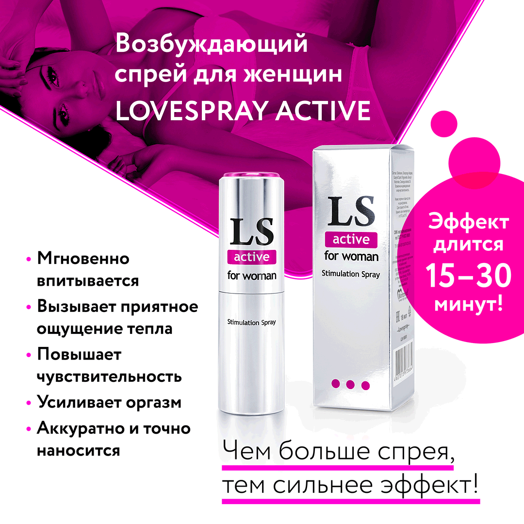 - LoveSpray Active значительно повышает чувствительность и пробуждает сексуальное желание.