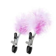 Зажимы для сосков с розовым пухом Toyfa Theatre, серебристые